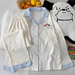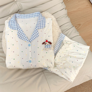 インスタイル漫画子犬夏薄いパジャマ女の子半袖ショーツインターネット有名人チェック柄ホーム服卸売
