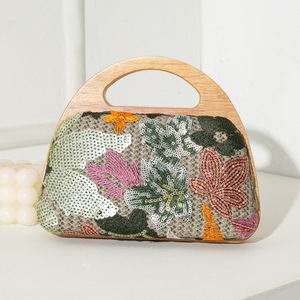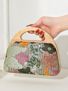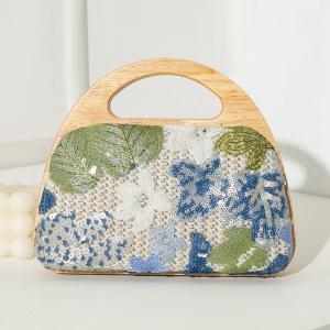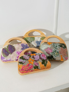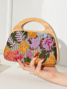 クロスボーダー新しい女性のイブニングバッグ無垢材ポータブルわら織りスプライシングメッシュ刺繍手作りチェーンクロスボディバッグ