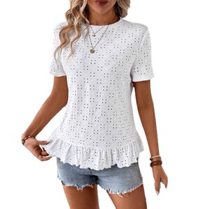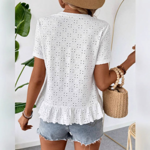 Amazon独立系2025夏ヨーロッパとアメリカの新しいジャカードVネックプッシュスリーブ半袖Tシャツクロスボーダーレディーストップス
