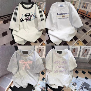 レディース半袖Tシャツ、ルーズトップス、2025年新デザイン、純綿婦人服、夏物、高級感、卸売、その他