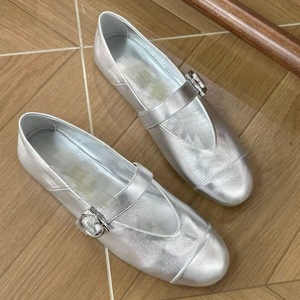 [トップバージョン] 2025 春夏新レトロメリージェーンシューズシルバー浅い口ソフトソールシューズ婦人靴フラットシューズ