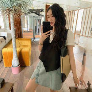 夏用の女性用のエレガントでハイエンドなスーツベスト、薄いアウターウェア、甘くてスパイシーなデザイン、不規則なノースリーブトップ