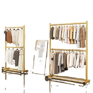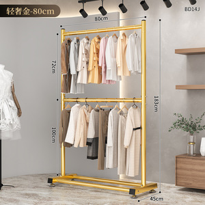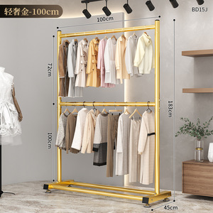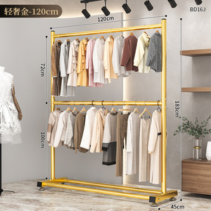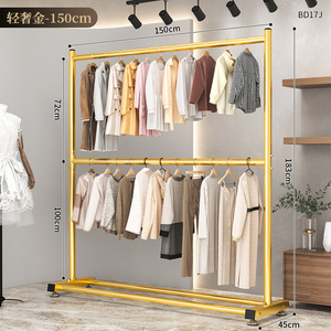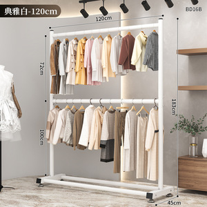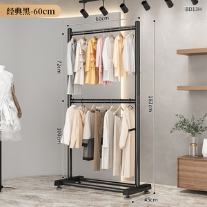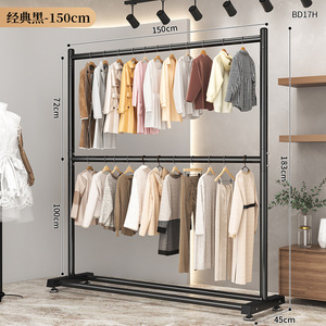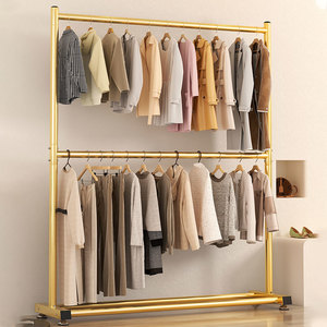 双层晾衣架落地立式晾衣杆家用挂衣架室内双杆衣架阳台简易收纳架