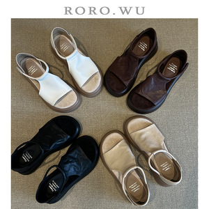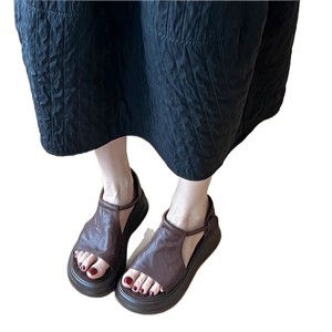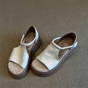 シープスキンバージョン〜レトロカジュアル厚底オープントゥサンダル女性の夏の新しい多用途ソフトソール増加ビーチローマンシューズ
