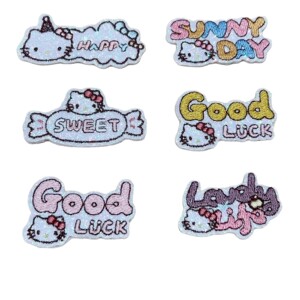 かわいい漫画の刺繍キティ猫スパンコール布ステッカー衣類バッグ装飾デカール修理子供のヘアピンアクセサリー