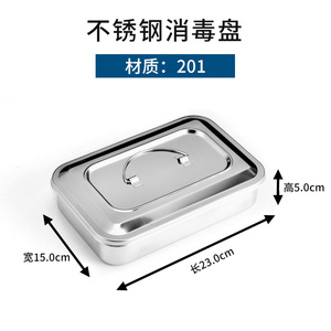 医療治療トレイステンレス鋼体温計浸漬医療機器消毒ボックス歯科鍼針カバー付き正方形プレート