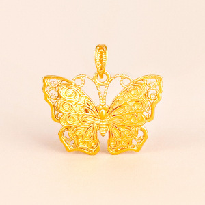 3D手描きタンカ立体厚層砂金鳳凰蝶愛の形ペンダント女性用小紅書ライブペンダント卸売