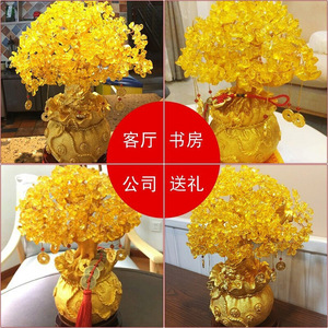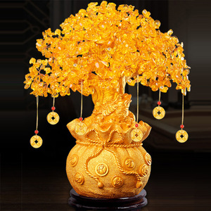 シトリン金のなる木マネーバッグ宝の穀物盆地金のなる木クリスタルツリー家の装飾富の装飾品オープニングギフト