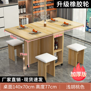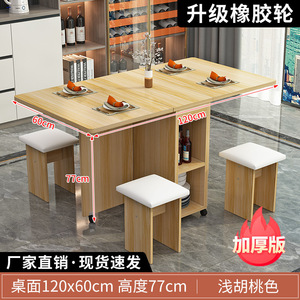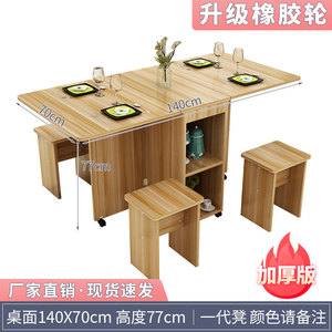 [工場直販] 家庭用折りたたみダイニングテーブル、可動式小型多機能テーブル、長方形の食事用のスツール4脚