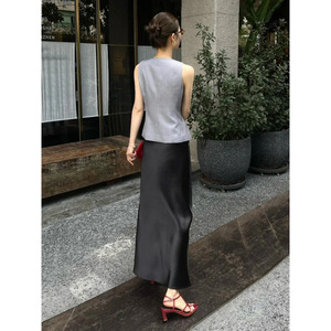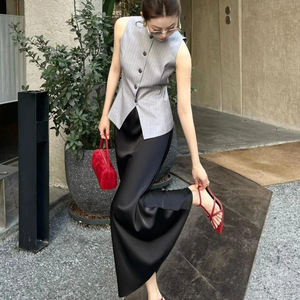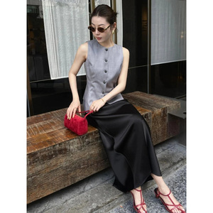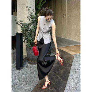 夏服、軽い高級感、ハイエンド、スマートで通勤できる、小さな香りのグレーのトップスとスカートのスーツの完全なセット