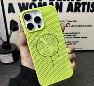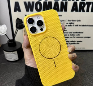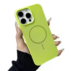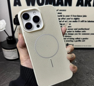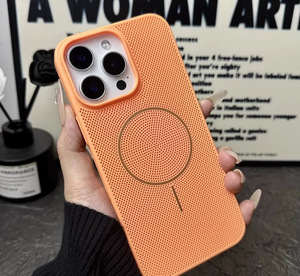 放熱ネット穴付きiPhone17対応通気性磁気吸着スマホケース、Apple 15promax用超薄型PCマット保護ケース