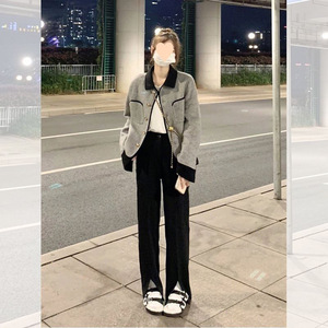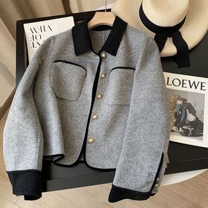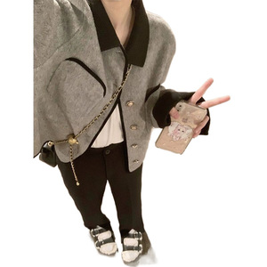Xiaoxiangfeng ショートストリートグレージャケット女性のための秋と冬のレトロなハイエンドデザインニッチ気質長袖トップ