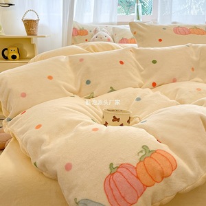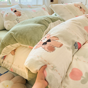 ミルクベルベットキルトカバーシングルピース150X200x230冬プラスベルベットキルトカバーコーラルベルベットフランネル寝具4点セット