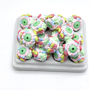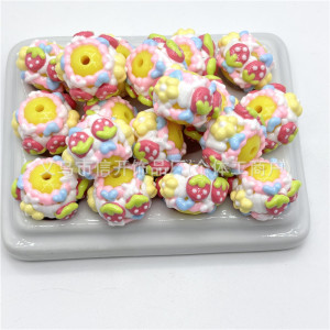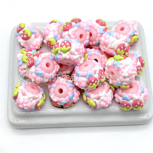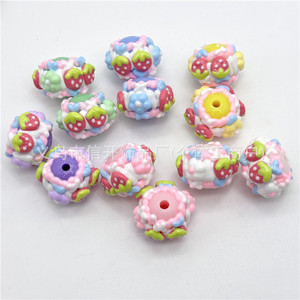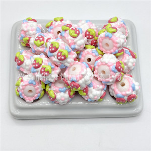 スルーホールカラー手描きイチゴフラワービーズアクリルビーズ携帯電話キーホルダー diy 手作りルースビーズ素材