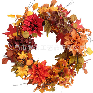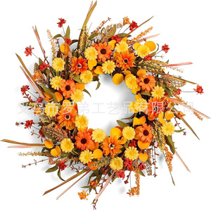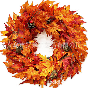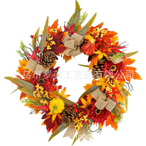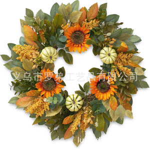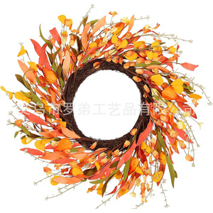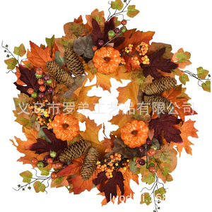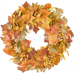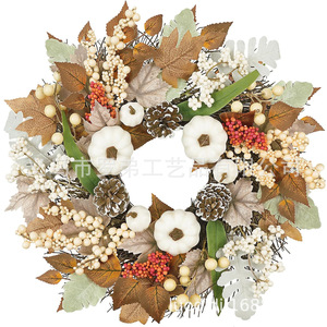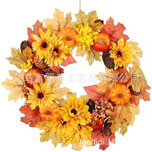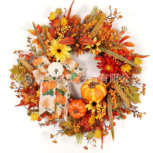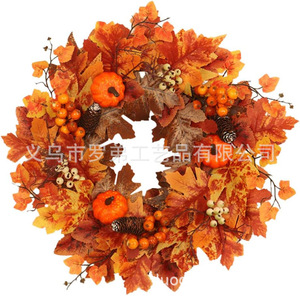 越境新製品アマゾンハロウィン秋の花輪カボチャベリードア吊り収穫祭籐リング感謝祭花輪