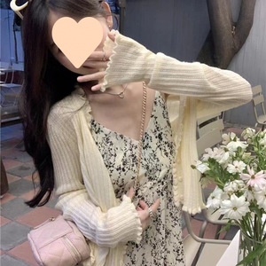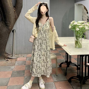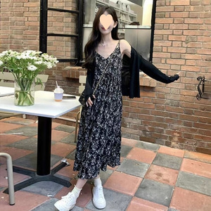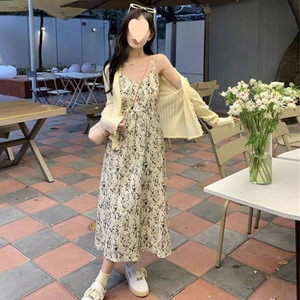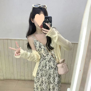 碎花收腰显瘦气质吊带连衣裙长袖针织开衫女春季2025新款时尚套装