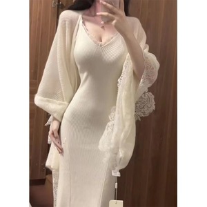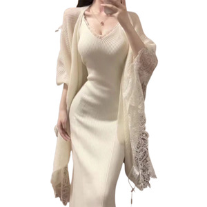 女性のためのスーツ 2025 秋の新ピュア欲望ホットガールサスペンダードレスウエストロングスカートレースショールジャケット