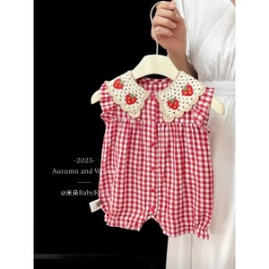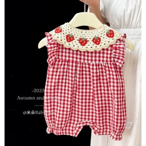 夏の新しい女の赤ちゃん用ベビー服、レースのファッショナブルなチェック柄のジャンプスーツ、ノースリーブの百日満月ロンパース