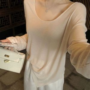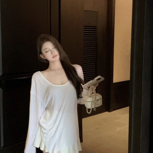 罩衫薄款微透夏季新款镂空防晒宽松T恤设计蕾丝拼接长袖露背上衣