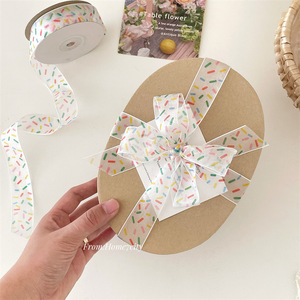 レインボードット小さな新鮮なホリデーデコレーションリボンカラフルな水玉模様の雪ガーゼリボン誕生日ケーキボックスストラップリボン
