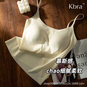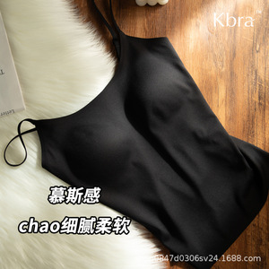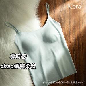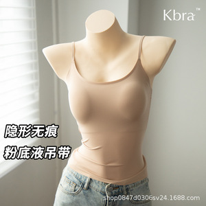オリジナルリキッドファンデーションインビジブル肌色アイスシルクキャミソール女性用胸パッド付き、外でも着用可能、シームレスビューティーバックトップ