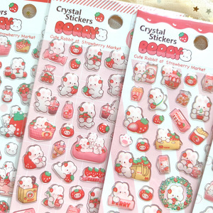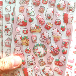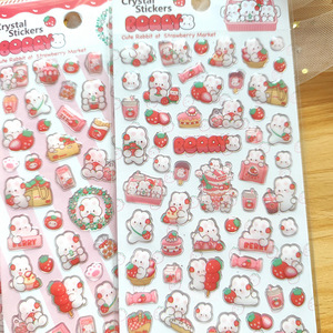 ピンクのイチゴバニークリスタル立体子供用ステッカー小さなウサギのかわいい女の子のご褒美手作り装飾ステッカー