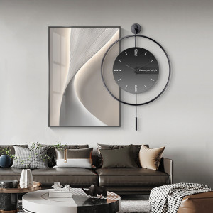 モダンでシンプルなレストラン装飾絵画ミニマリスト抽象時計付きリビングルーム吊り絵画ライト高級ハイエンド雰囲気ライト壁画