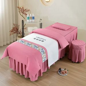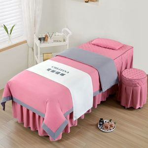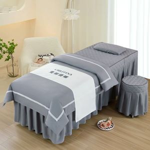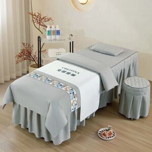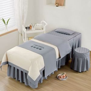 穴あき美容ベッドカバー4点セット、マッサージ・理学療法・美容室専用シングルキルトカバー、オールシーズンストレートヘア