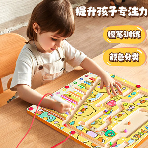 子供用磁気迷路ビーズパズルペン集中力トレーニング色分類機関教育ギフトおもちゃ
