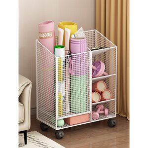 ヨガマット収納バスケット、ホームフィットネススポーツ用品収納ラック、取り外し可能なバスケットボールバドミントン隙間収納ラック