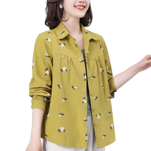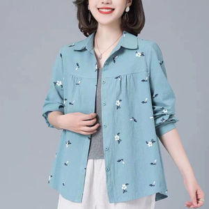 棉2025春秋新款大码胖宽松洋气减龄长袖衬衫中年妈妈上衣外套