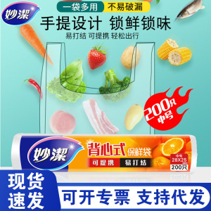 妙潔鮮度保持袋、ポイントブレイク式ベスト型家庭用ロールバッグ、厚手冷蔵庫用食品グレードPEハンドル付きバッグ