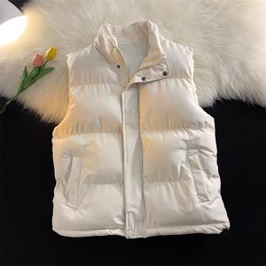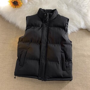 秋冬の韓国風ベスト、男性と女性のためのトレンディなスタンドアップカラーコットンジャケット、スリムで厚みのあるチョッキベスト、暖かいベストジャケット