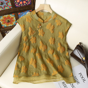 新しい中国風のトップス女性の気質スタンドカラーフライングスリーブシャツ 2025 夏の新痩身半袖 Tシャツ