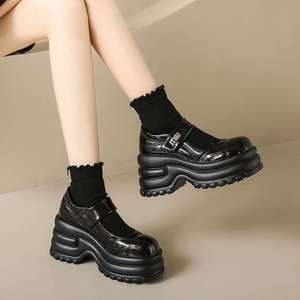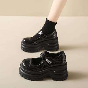 ウェディングアーティファクト9cm厚底増量オフホワイトウェディングシューズレディース秋新作プラットフォームメリージェーンスモールレザーシューズ