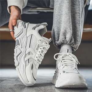 メンズシューズ夏通気性 2025 新しい若者厚底カジュアルお父さん靴メンズ多用途メッシュスポーツトレンディな靴