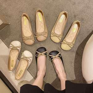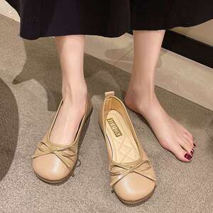 秋の女性用ソフトソールビーニーシューズ、滑り止めマタニティシューズ、浅口シングルシューズ、蝶結びフラットワークシューズ、女性用ワンステップシューズ