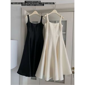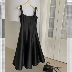 夏の新しいヘボンスカートウエスト優しいサテン光沢ウエスト気質サスペンダードレスドレス