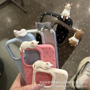 かわいい立体猫 iphone16 携帯電話ケース Apple 15promax シンプル水玉 13 ソフト 14 に適しています