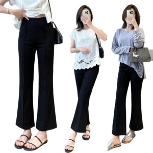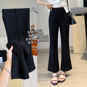 マーメイドスリムパンツ【高級小黒パンツ】夏涼しいソフトストレッチカジュアル9点パンツ薄手マイクロフレアパンツ女性用