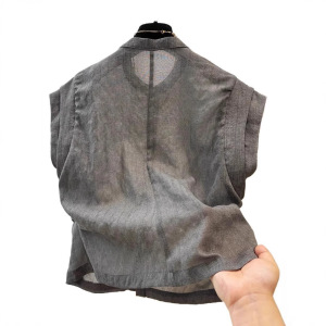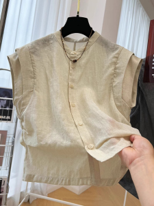 ニッチなデザインのシックな女性用半袖コットンとリネンシャツ、夏用の薄いフレンチスタイルのショートフライングスリーブトップ、トレンディです。