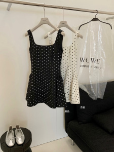 WGWE フレンチスイート気質年齢軽減ノースリーブ水玉小柄サスペンダースカートドレスAラインスカートW5787