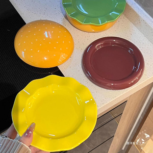 ハンバーガーボウル、プレート、家庭用新作陶器、可愛くてかわいい皿、高級食器