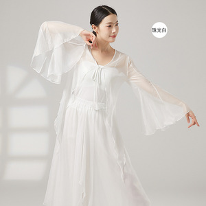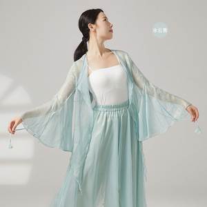 古典舞踊ガーゼツーピースエレガントな女性の中国舞踊服、古代スタイルの妖精のパフォーマンス服