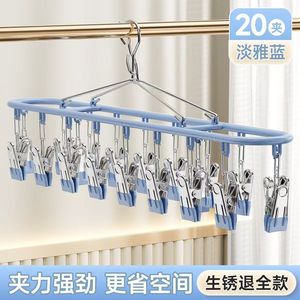 [1 個] ブルーステンレススチールハンガー - クリップ 20 個