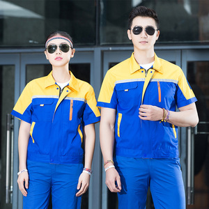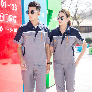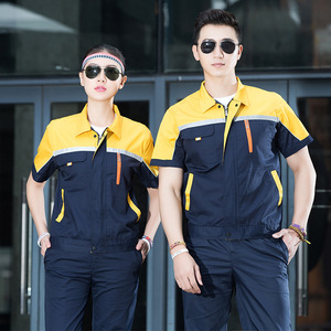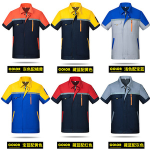 男性作業服工場吸汗性作業場薄手のトップス半袖労働保護卸売通気性スーツ夏服建設現場