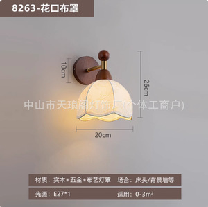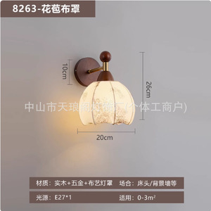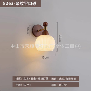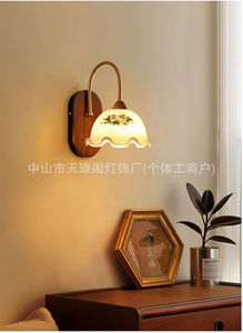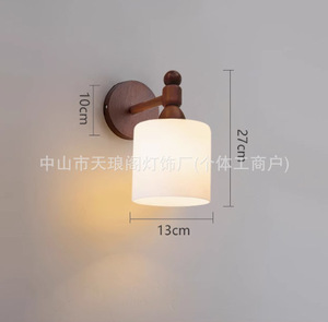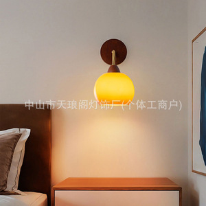 北欧シンプルな寝室のベッドサイドランプアメリカンレトロなリビングルームの壁廊下通路ランプ日本製無垢材ガラス壁ランプ