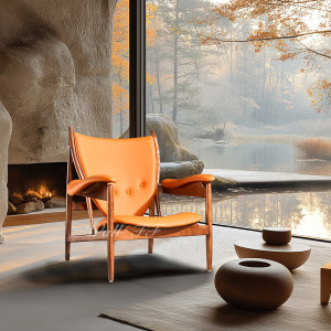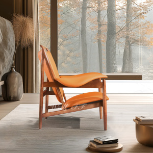中世スタイルのチーフチェアインターネット有名人デザイナークリエイティブレザーソファチェアアッシュ無垢材シングルレジャーチェア