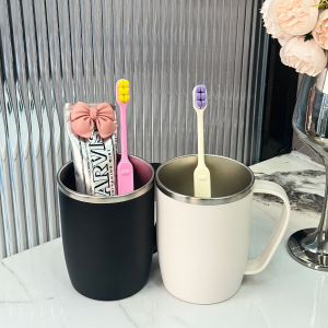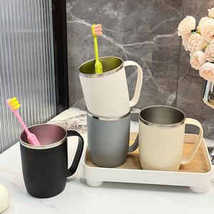 ステンレス鋼のマウスウォッシュカップ、ハンドル付きのハイエンドの軽い高級歯磨きカップ、家庭用洗浄カップ、歯科用シリンダー、シンプルなマウスウォッシュカップ