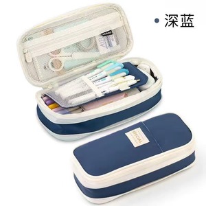 中学生・高校生向けシンプル大容量キャンバスペンケース男女兼用多層無地文房具収納ボックス鉛筆ケース